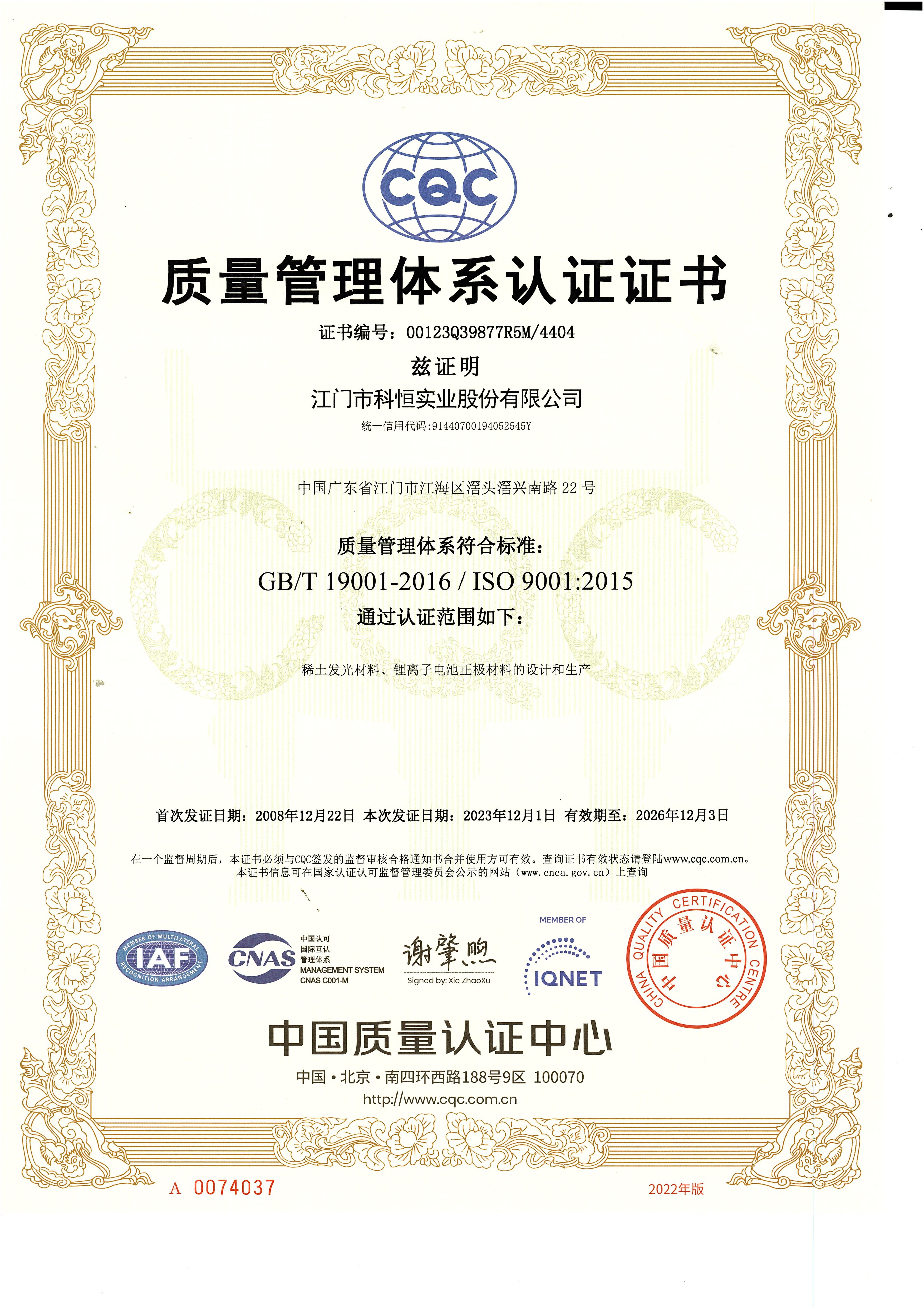 科恒堅(jiān)持“科技卓越、永恒追求、質(zhì)量第一、客戶(hù)至上”的質(zhì)量方針,設(shè)立各級(jí)質(zhì)量控制體系,保證產(chǎn)品質(zhì)量。公司先后通過(guò)了ISO9001質(zhì)量管理體系認(rèn)證和ISO14001環(huán)境管理體系認(rèn)證。公司以滿足客戶(hù)需求為宗旨,以卓越的科技成果、完善的制造過(guò)程,制造一流的產(chǎn)品、增值的服務(wù)、共享的價(jià)值,讓客戶(hù)滿意。